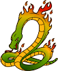 sob a forma de uma cobra muito grande, com dois olhos enormes, que parecem